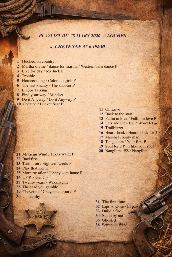 « Tous les Évènements Sam 28/03/2026 à Loches (37) 28 mars 2026 à 19 h 30 - 23 h 59 15€ « Ven 27/03/2026 à Cormery (37) Dim 29/03/26 à Pouzay (37) » Ajouter au calendrier Google Agenda iCalendar Outlook 365 Outlook Live Détails Date : 28 mars 2026 Heure : 19 h 30 - 23 h 59 Prix : 15€ Catégorie d’Évènement: AGENDA Organisateur CHEYENNE 37 Lieu Loches
