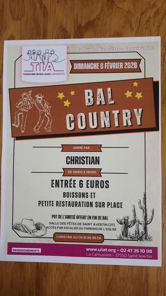 Samedi 7/02/2026 : Notre Bal Carnaval COUNTRY ATTITUDE à Chouzé-sur-Loire (37 proche 49)