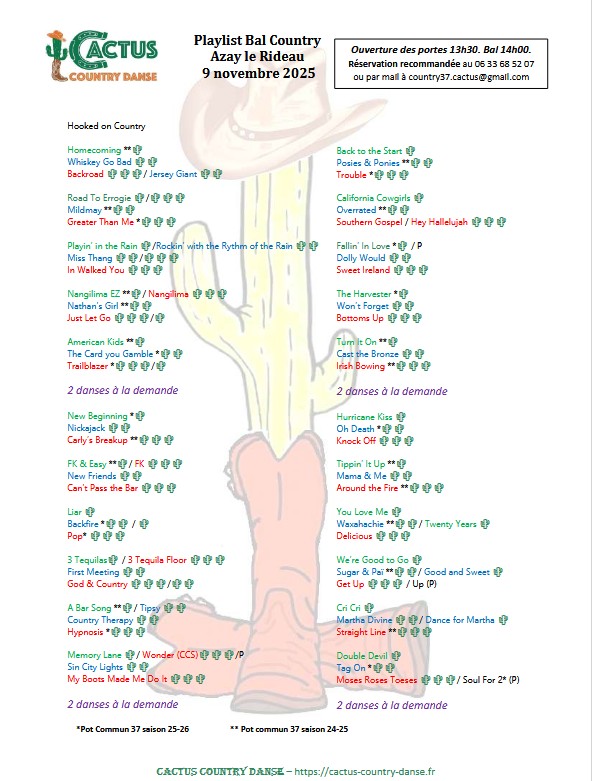 « Tous les Évènements Dimanche 9 nov 2025 à Azay-le-Rideau (37) 9 novembre 2025 à 14 h 00 - 19 h 00 « Dimanche 19/10/2025 à Chemillé-en-Anjou (49) Samedi 22/11/2025 à St Lambert des Levées (49) » Ajouter au calendrier Google Agenda iCalendar Outlook 365 Outlook Live Détails Date : 9 novembre 2025 Heure : 14 h 00 - 19 h 00 Catégorie d’Évènement: AGENDA Organisateur CACTUS COUNTRY DANSE